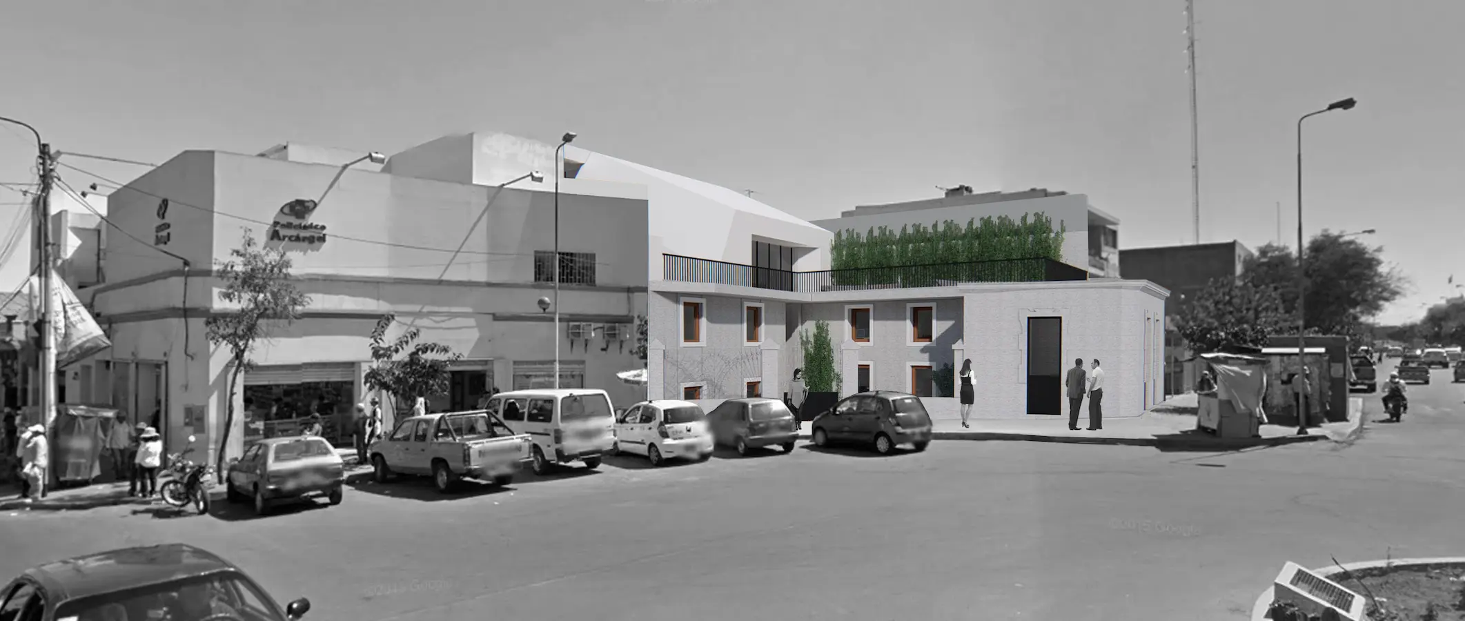 El proyecto está ubicado en la intersección de la Av. Siglo XX y la Av. Goyeneche, en el centro de la ciudad de Arequipa. El proyecto contempla la integración de dos arquitecturas. Una edificación antigua (Casona) y una edificación nueva. Se busca que ambas converjan en un diálogo armonioso, donde el nuevo volumen se integra a la casona existente sin transgredirla, sin imitarla y sin perder sus características de arquitectura contemporánea.
